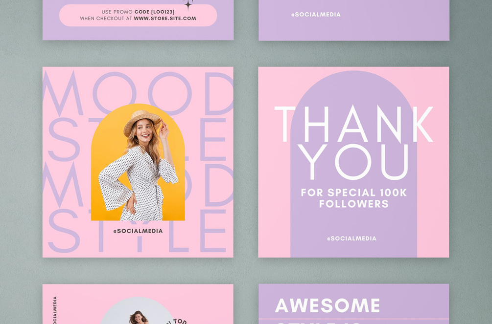 Canva Instagram Post Layout Template with Pink and Purple Background Color Palette Accent for your brand with stylish, modern, minimalist design and easy to use. This template is perfect for promoting your products, shop, and sale. You can easily change the colors, and font, to match your style.